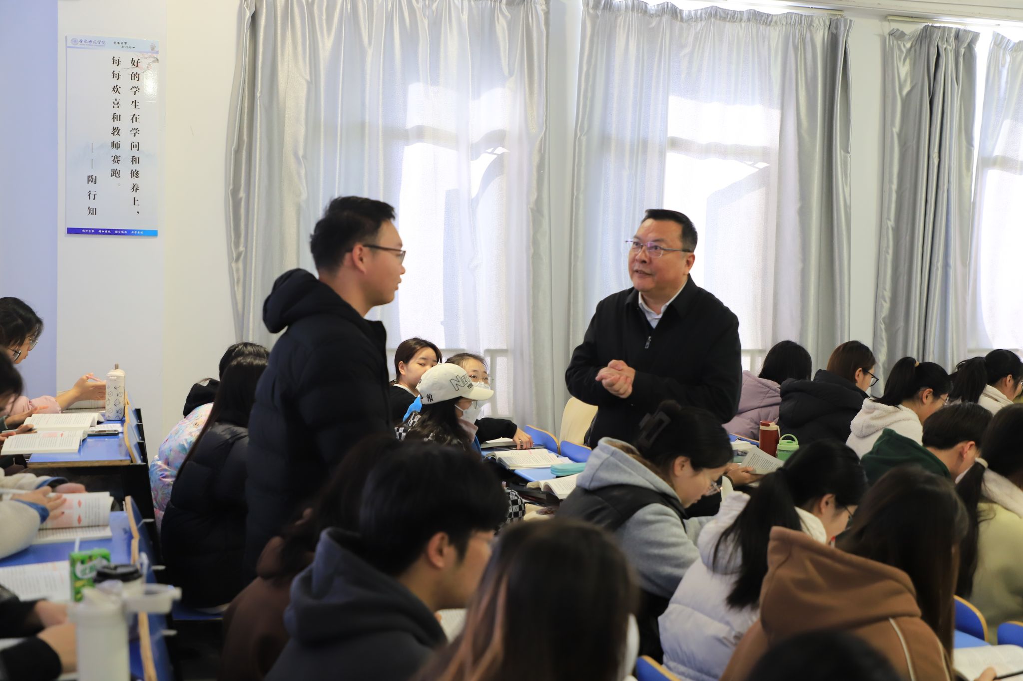 为深入学习贯彻习近平总书记关于教育的重要论述,认真落实关于高校思政课、beat365官方网站建设的相关文件精神,认真落实“学校党政领导班子带头推动思政课建设、带头联系思政课教师”以及“领导干部讲授思政课”等明确要求,11月28日上午,院党委书记徐成钢走进锦绣校区《习近平新时代中国特色社会主义思想概论》思政课堂,讲授并听评思政课,深入一线调研指导beat365官方网站内涵建设。