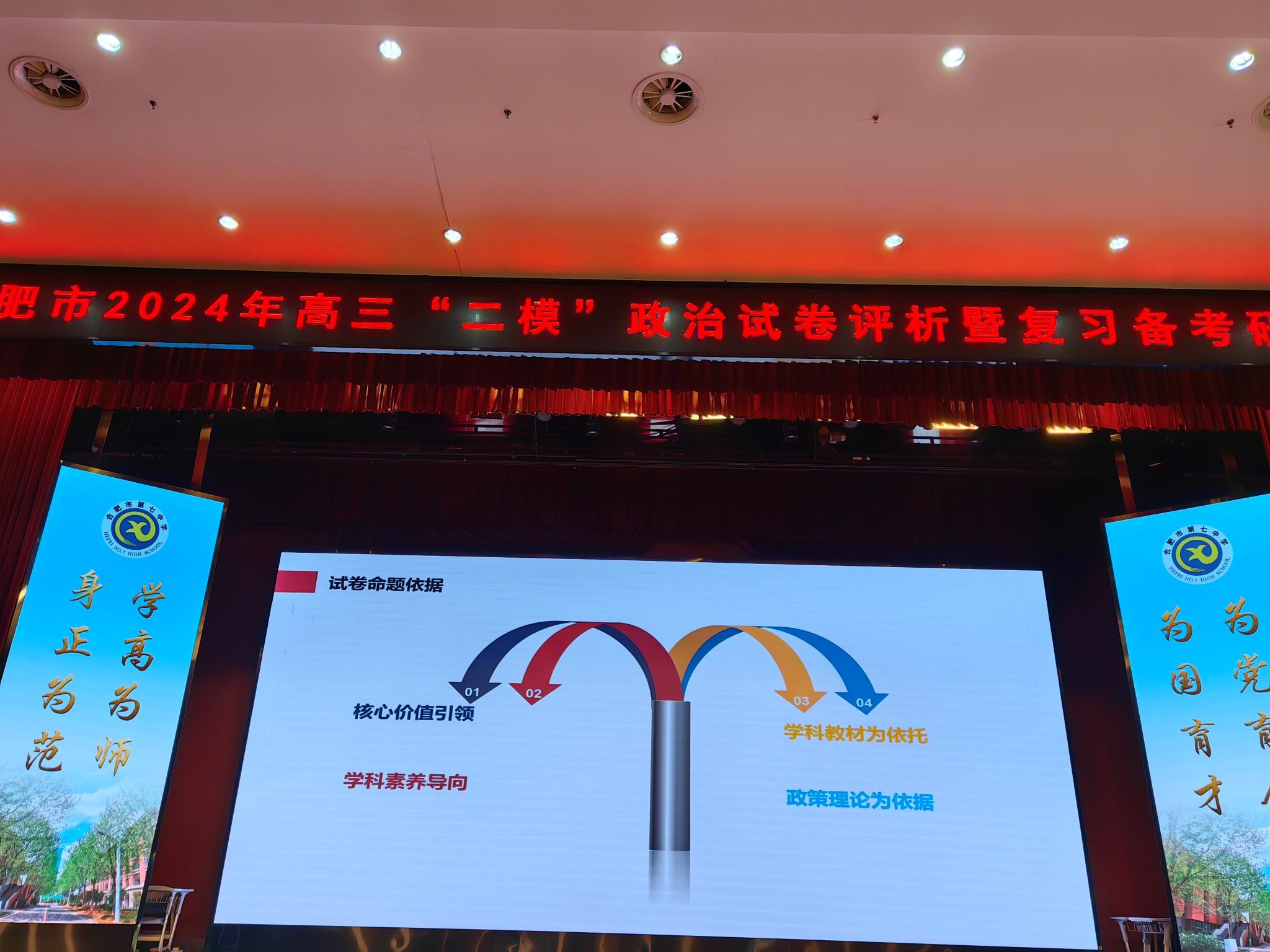 为深入开展大中小学思政课一体化的教研活动,结合学校“访企拓岗促就业”专项行动有关要求,4月25日上午,学院思想政治教育专业课教师石春梅和张淑华参加在合肥市第七中学桃蹊会堂召开的合肥市2024年高三“二模”政治试卷评析暨复习备考研讨会。本次会议由合肥市教育科学研究院主办,合肥市思政学科教研员、合肥市全体高三政治教师参加了此次教研活动。
