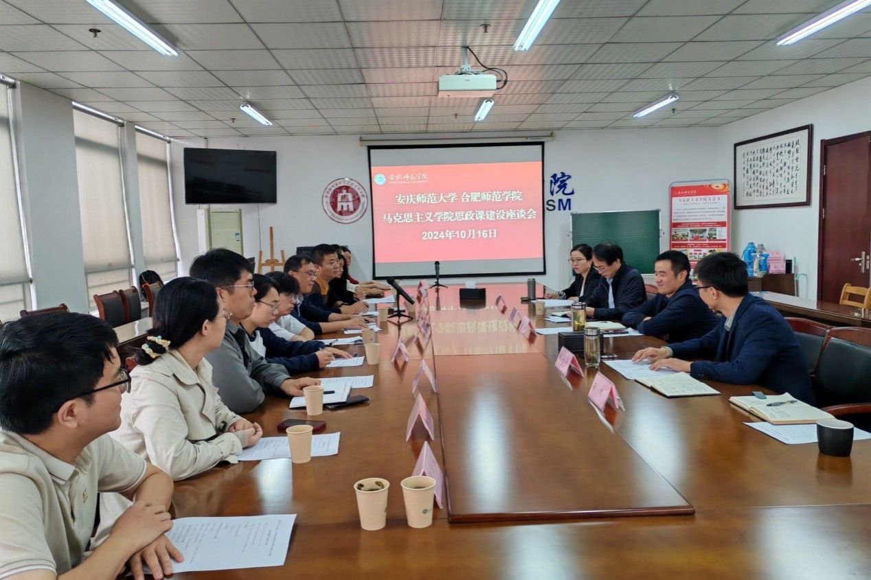 10月16日上午,安庆师范大学beat365官方网站副院长余江舟、习近平新时代中国特色社会主义思想概论教研室主任陈道发等一行10人来学院调研,围绕思政课建设进行座谈交流。学院党总支副书记吴世红、副院长方政、习近平新时代中国特色社会主义思想概论教研室主任张军占、形势与政策教研室主任吴石英等参加交流。方政主持座谈交流。