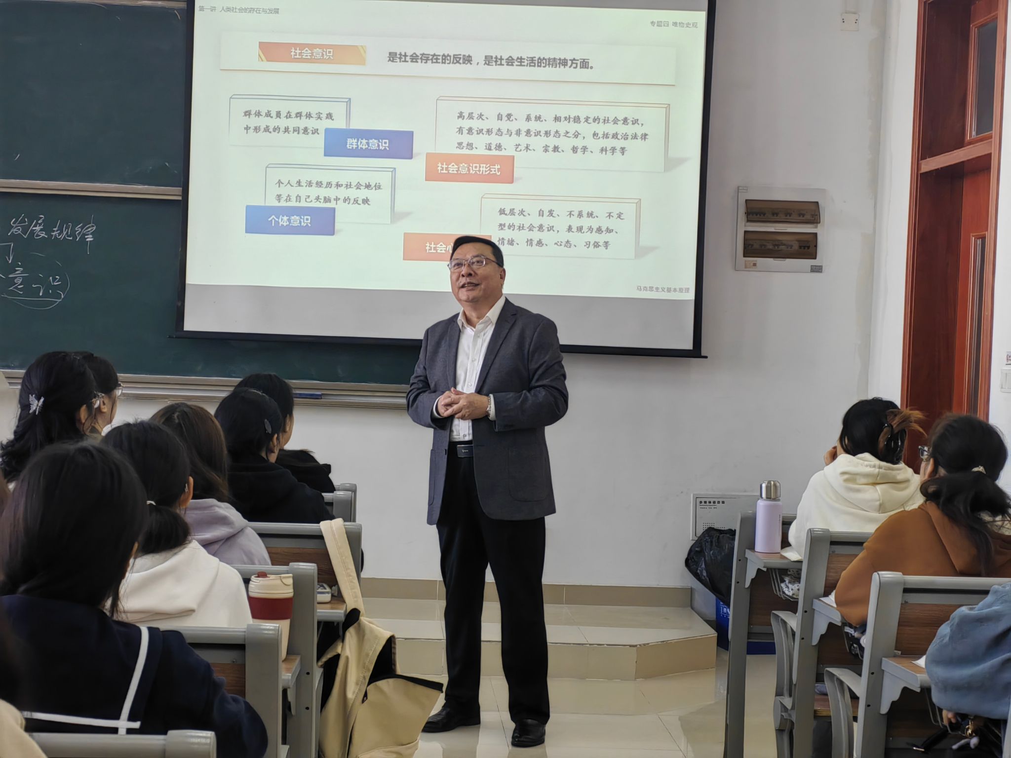 徐成钢认真听取beat365官方网站教师陈保同的《马克思主义基本原理》课程并进行点评,指出此次课堂教学能够融入党和国家的最新大政方针,体现了思政课的政治属性;能够运用信息技术赋能课堂教学,适应了教育信息化要求;能够设计高质量的课堂互动问题,尊重了学生学习的主体地位。徐成钢还与同学们进行了亲切交流,勉励同学们要认真学习领悟习近平总书记考察安徽重要讲话精神,学好思政课,坚定理想信念,勇担历史使命,努力成长为德智体美劳全面发展的社会主义建设者和接班人。