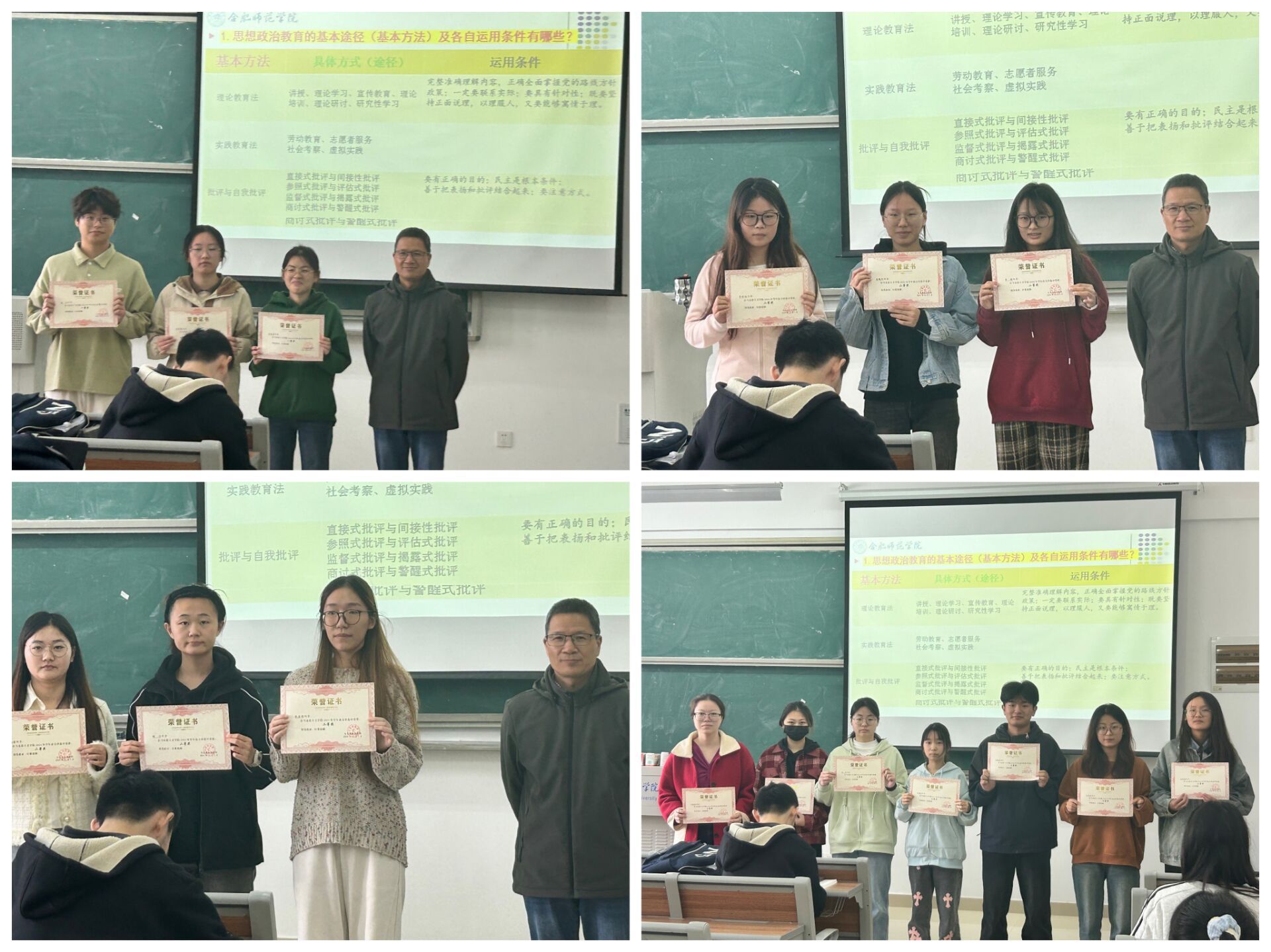 2024年11月8日,beat365官方网站在滨湖校区铭传楼B303教室举行2024年度思想政治教育专业优秀学年论文颁奖活动,2023级思想政治教育班全体同学、院长何光辉、副院长方政参加了颁奖活动。