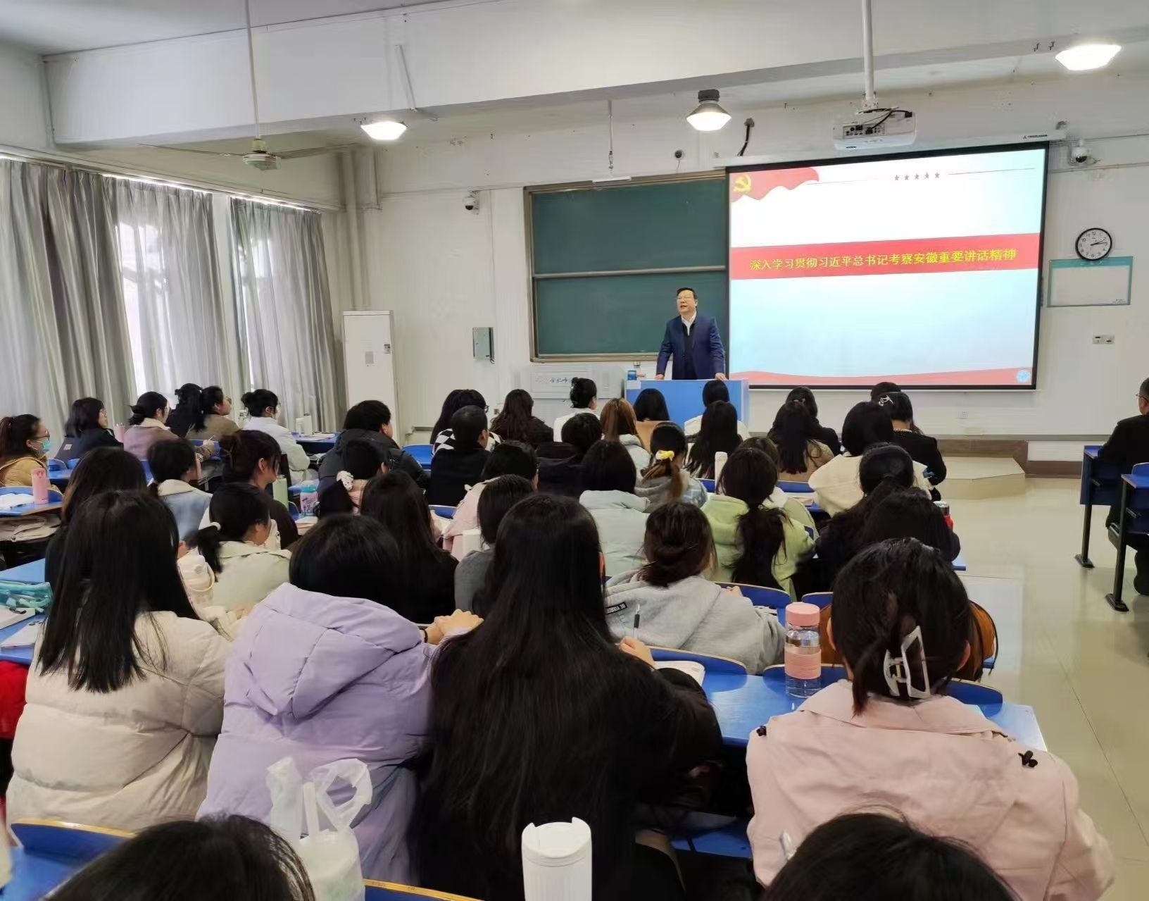 为深入学习宣传贯彻习近平总书记考察安徽重要讲话精神,认真落实“领导干部上思政课”工作要求,11月21日上午和11月29日下午,党委书记徐成钢分别走进本科生和研究生思政课堂,结合讲授《习近平新时代中国特色社会主义思想概论》内容,为同学们宣讲习近平总书记考察安徽重要讲话精神,推动习近平总书记重要讲话精神在青年学生中入脑入心。