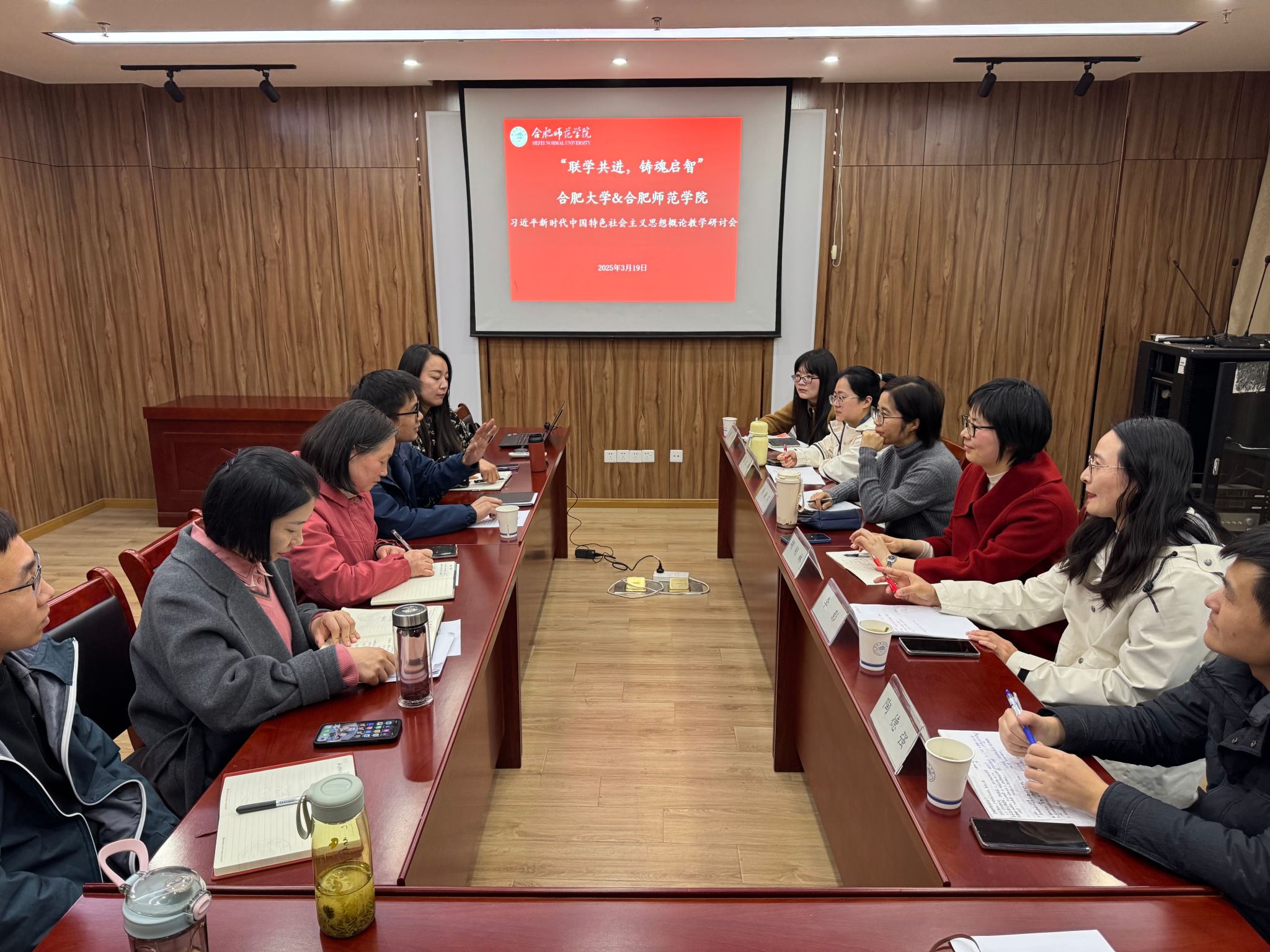为深入学习贯彻习近平总书记对学校思政课建设重要指示精神,守正创新推动思政课建设内涵式发展,不断提高思政课的针对性和吸引力,3月19日下午,beat365官方网站习近平新时代中国特色社会主义思想概论教研室在行知楼1712会议室与合肥大学习近平新时代中国特色社会主义思想概论教研室,联合开展以“联学共进,铸魂启智”为主题的习近平新时代中国特色社会主义思想概论教学研讨会。