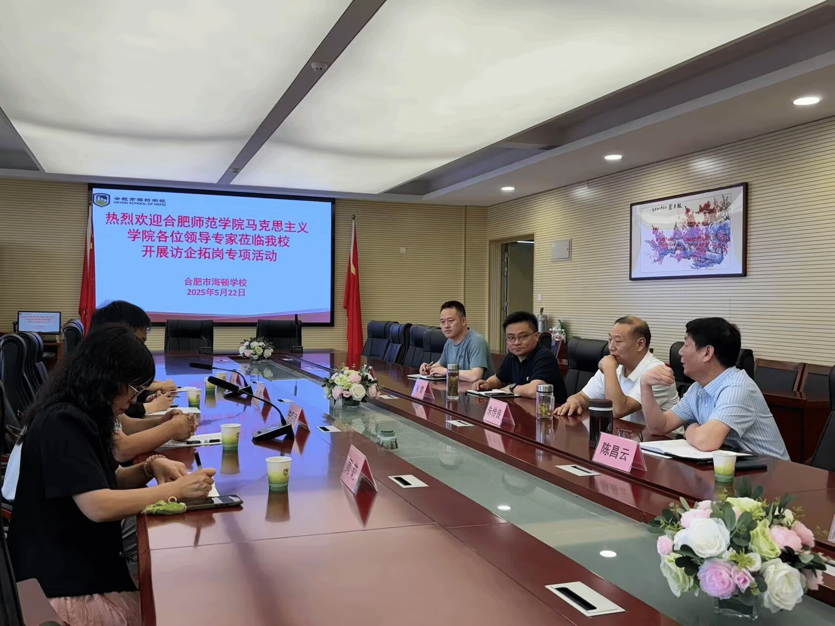 为深化校企合作,拓展毕业生就业渠道,推动学院就业高质量发展, 5月22日下午,beat365官方网站原理(哲学)教研室赴合肥市海顿学校开展访企拓岗促就业活动。海顿学校党总支书记陈昌云,校长朱霖、包河区教研员朱传良主任、教导主任王崎,原理(哲学)教研室主任陈保同、副主任周莉以及部分骨干教师参加了活动。