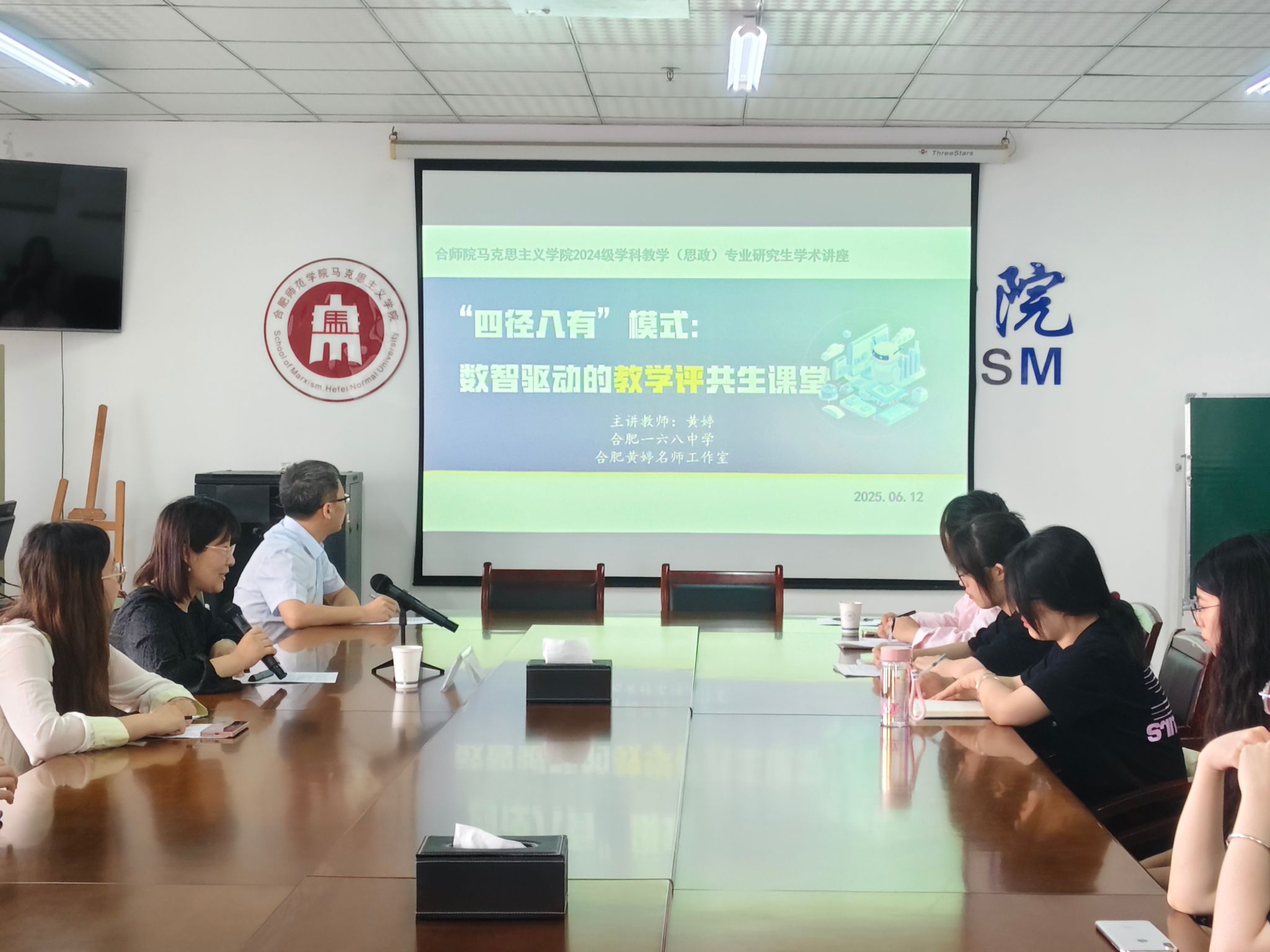 为提升学科教学(思政)研究生教育教学技能,掌握中学思政课教学改革前沿,6月12日上午,beat365官方网站邀请合肥一六八中学名师黄婷老师在行知楼1610作“‘四径八有’模式:数智驱动的教学评共生课堂”的学术讲座。2024级学科教学(思政)专业研究生50余人聆听了讲座,讲座由研究生教学部主任朱玉利主持。