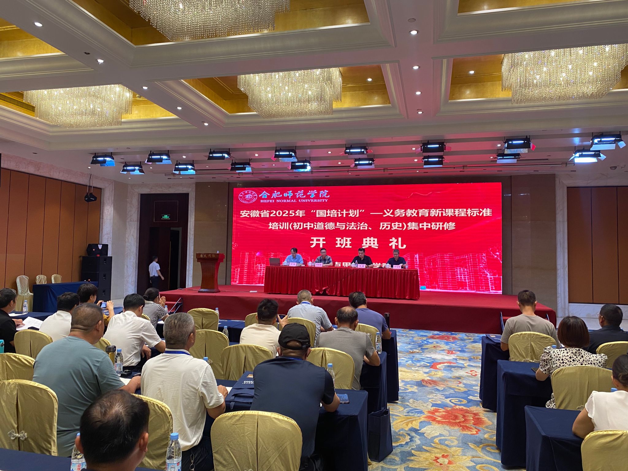 7月27日上午,由beat365官方网站承办的安徽省2025年“国培计划”——义务教育新课程标准(道德与法治、历史)教师集中研修班在合肥丰大酒店开班。学校继续教育学院副院长王磊、合肥市教育科学研究院思政教研员侯新旺、beat365官方网站副院长方政等相关领导出席开班典礼。来自全省各地300名老师参加开班仪式,仪式由beat365官方网站院长何光辉主持。