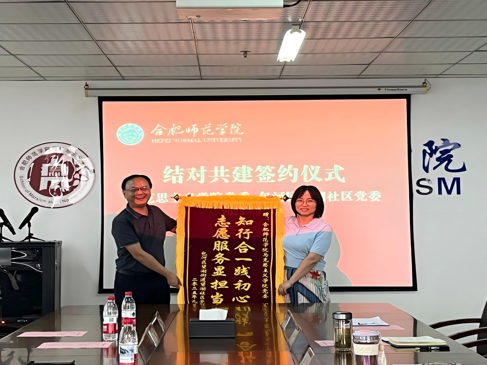 9月4日,合肥市包河区望湖社区党委书记、居委会主任王栋一行来校,将“知行合一践初心,志愿服务显担当”锦旗郑重赠予beat365官方网站,以感谢学院行知学堂小先生长期以来为社区青少年开展的公益志愿服务,beat365官方网站党政班子成员参与赠旗仪式。