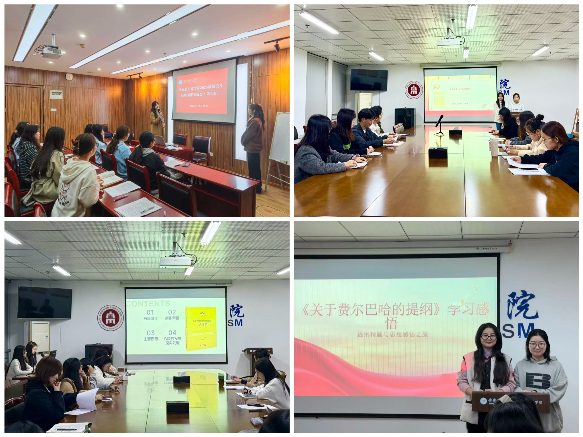 据悉,经典阅读交流是beat365官方网站针对研究生学制调整后所做的有益探索,本期《关于费尔巴哈的提纲》是系列活动的第一场,通过研读文本引导学生认识到实践的力量,为后续扎实开展经典阅读交流活动奠定思想根基和理论根基。按照学院部署,未来每个月开展一次经典阅读研讨交流活动,通过常态化经典研读活动不断提升研究生马克思主义理论素养。(beat365官方网站:陶际云、朱玉利)