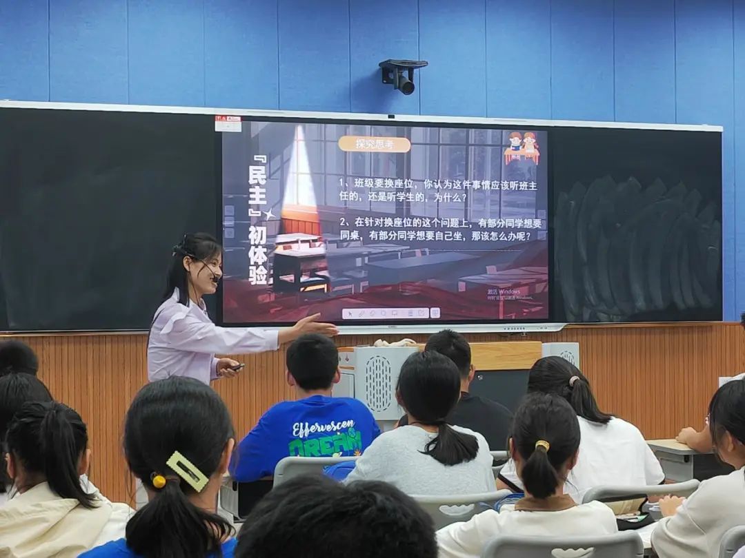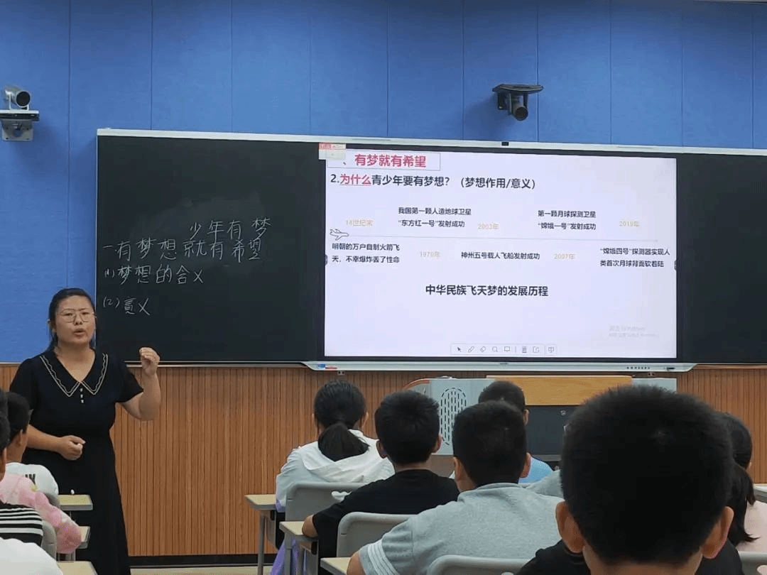 合肥市第四十五中学芙蓉分校(南区)徐文林、徐倩、高玲芝三位教师依次就七、八、九年级《道德与法治》课中的《少年有梦》《合理使用网络》《生活在新型民主国家》进行了课堂教学展示。三位教师紧密结合《义务教育道德与法治课程标准(2022年版)》和教材内容,精心设计教学活动,引导学生从小心怀至诚报国梦想,学会科学合理使用网络,正确认识新型民主国家的特色和优势。