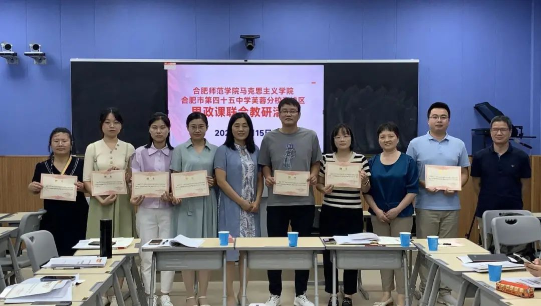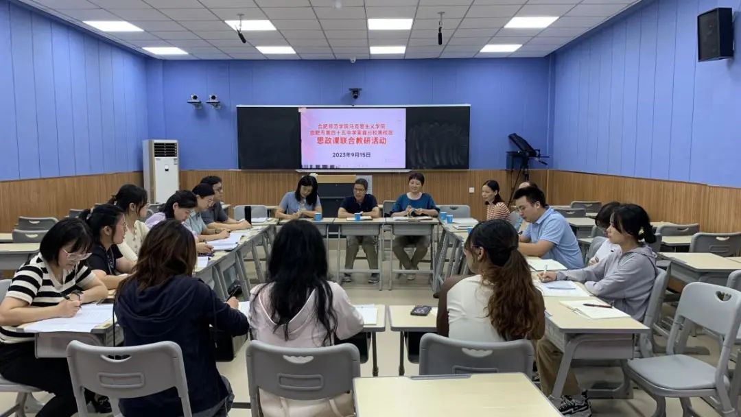 本网讯 为更好地提高合肥市四十五中芙蓉分校思政课教学的针对性和实效性,推动大中小学思政课一体化建设,进一步提升思政专业教育实践指导教师指导能力,9月15日下午,beat365官方网站与合肥市第四十五中学芙蓉分校(南区)在南校区录播教室联合开展了教研活动暨思政专业教育实践指导教师培训活动。院长何光辉、思政专业课程与教学论教师、教育实践指导教师以及合肥市第四十五中学芙蓉分校(南区)校长丁富城、副校长张克会、全体思政课教师等人员参加了本次活动。