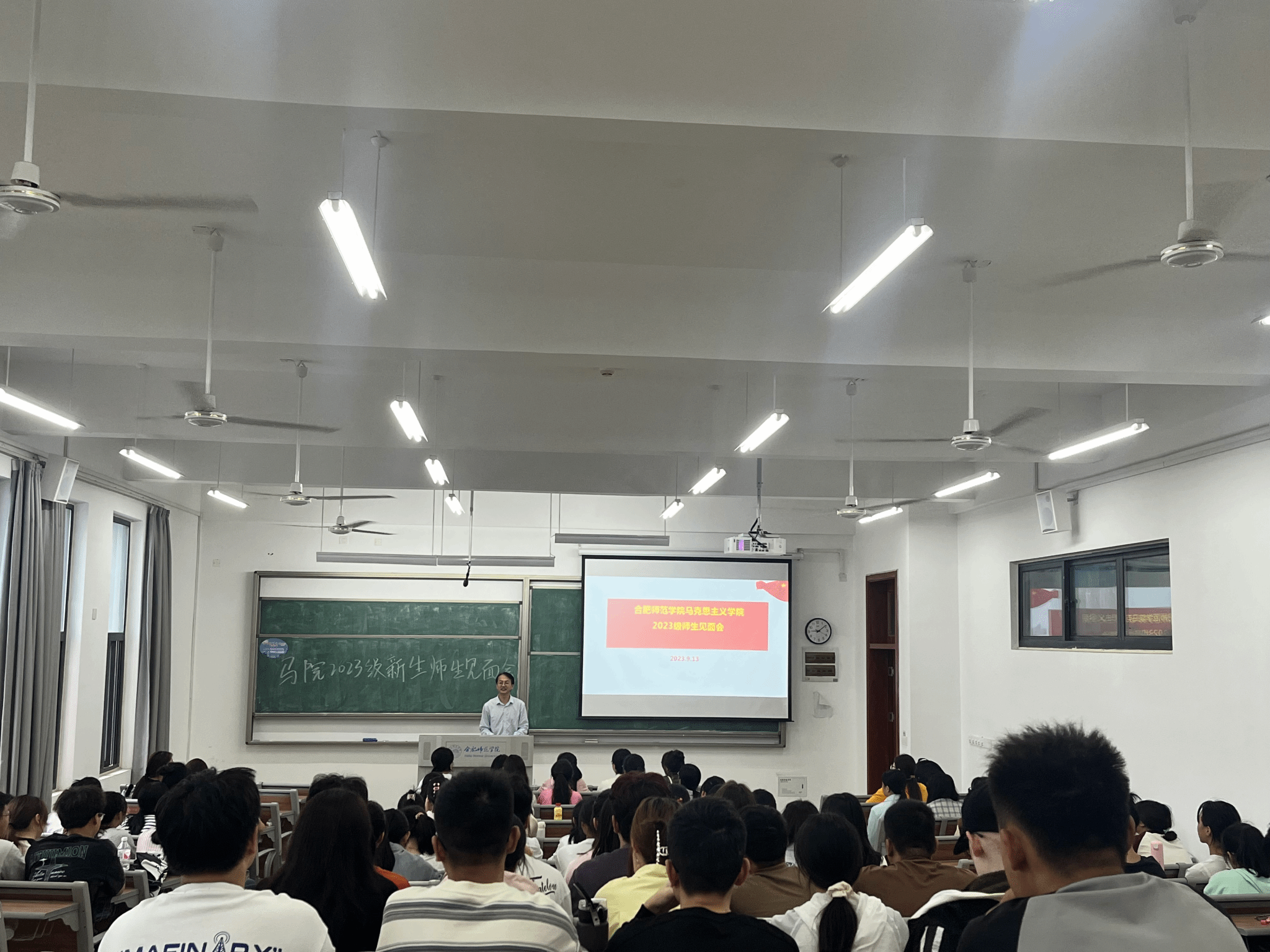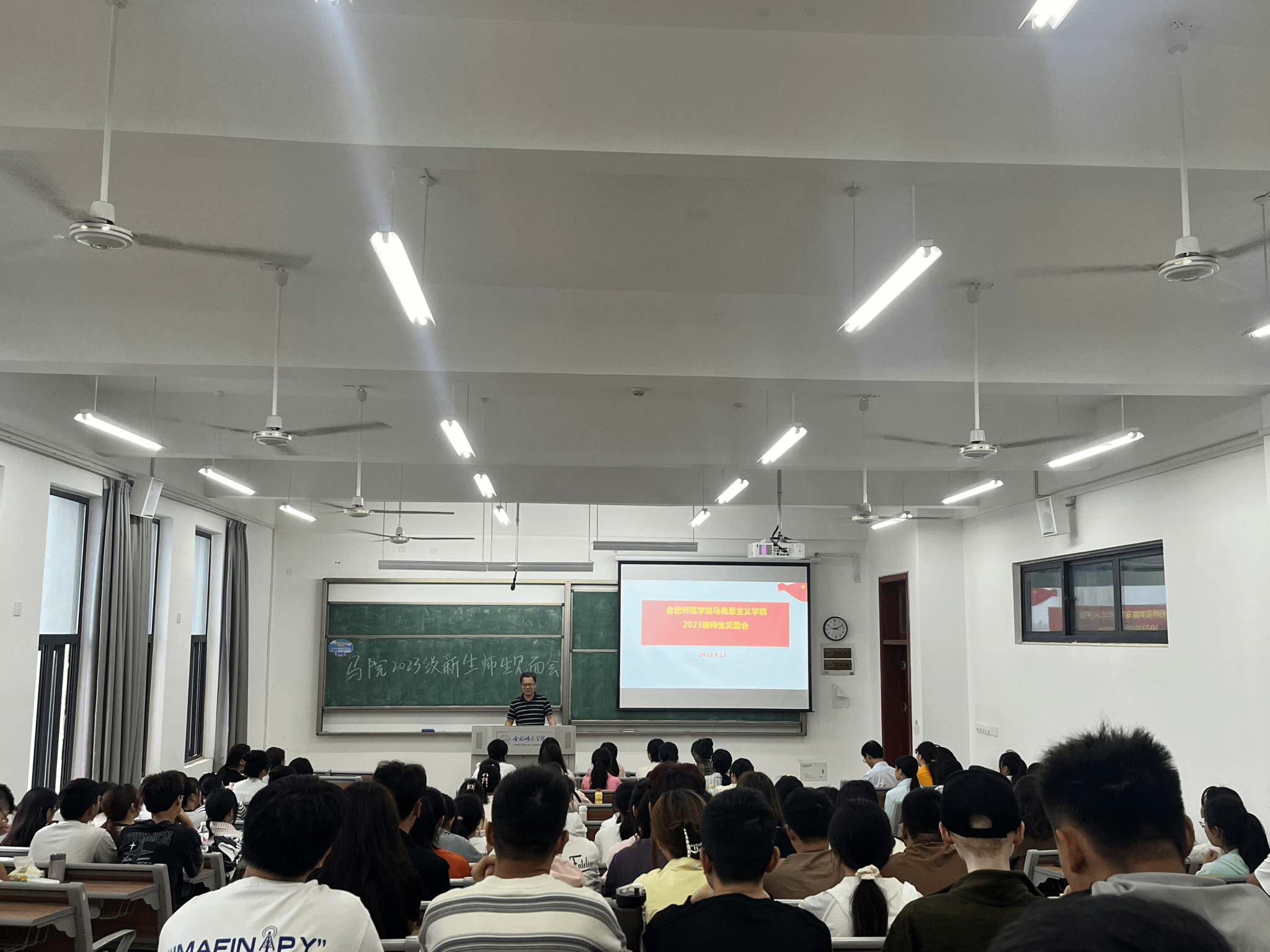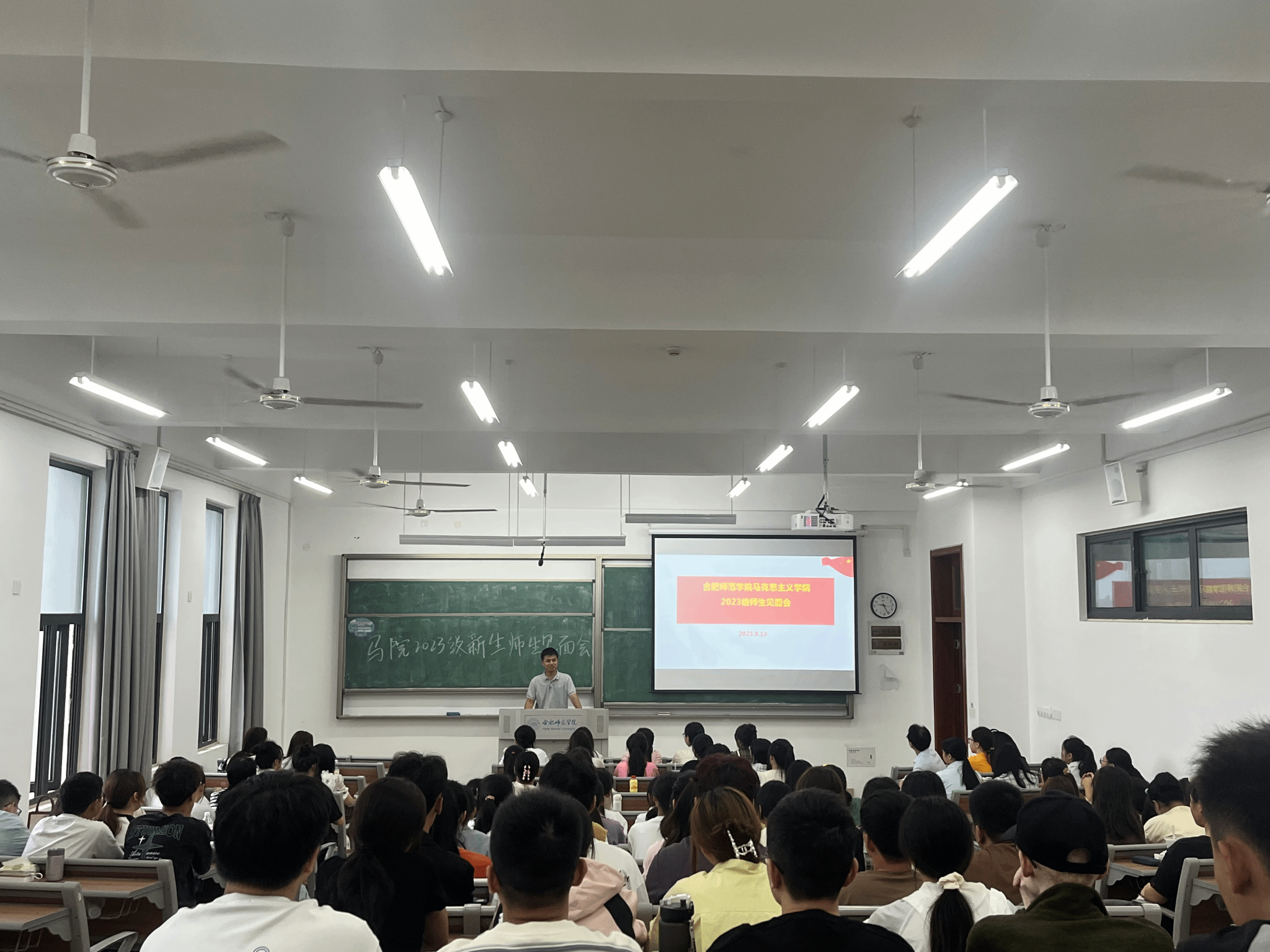 本网讯 新学期伊始,为进一步加强2023级新生对学院的认同感,尽快熟悉学院人才培养理念,适应大学的学习与生活,同时也增进新生与学院老师之间的师生感情,9月13日上午,beat365官方网站2023级新生师生见面会在滨湖校区铭传楼B304教室举办。会议由学院副院长方政主持,研究生教学部主任朱玉利、副教授王欣、副教授陈保同、新生辅导员王萌、优秀校友2010级思政班包丽蒙娜、两名优秀学生代表2021级思想政治教育班刘会龙和赵璟丽以及2023级全体新生共同参加。