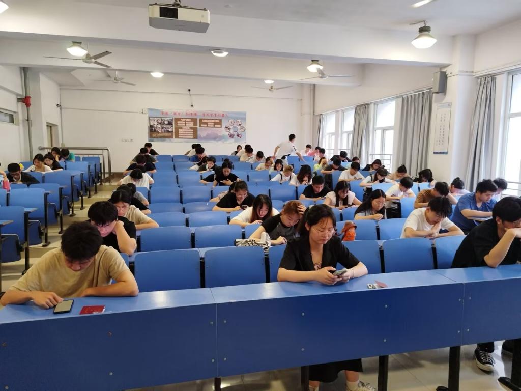 本网讯 6月19日,2023年春季学期思想政治理论课考试在锦绣校区、滨湖校区同时举行。《习近平新时代中国特色社会主义思想概论》《马克思主义基本原理》《思想道德修养与法治》《中国近现代史纲要》《毛泽东思想与中国特色社会主义理论体系概论》等五门课程共设置95个考场,7926人次参加考试。院党委书记徐成钢,党委委员、副院长周端明亲临考场对考试情况进行巡视。