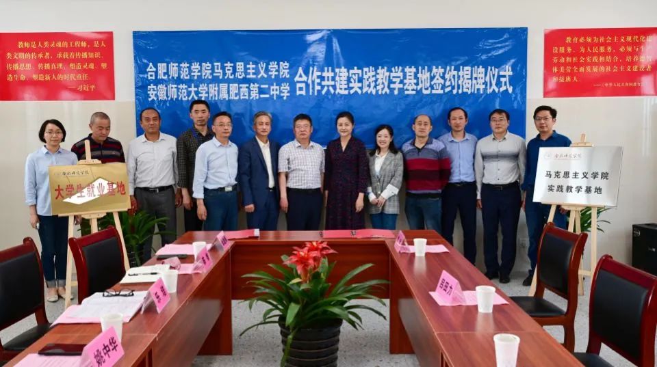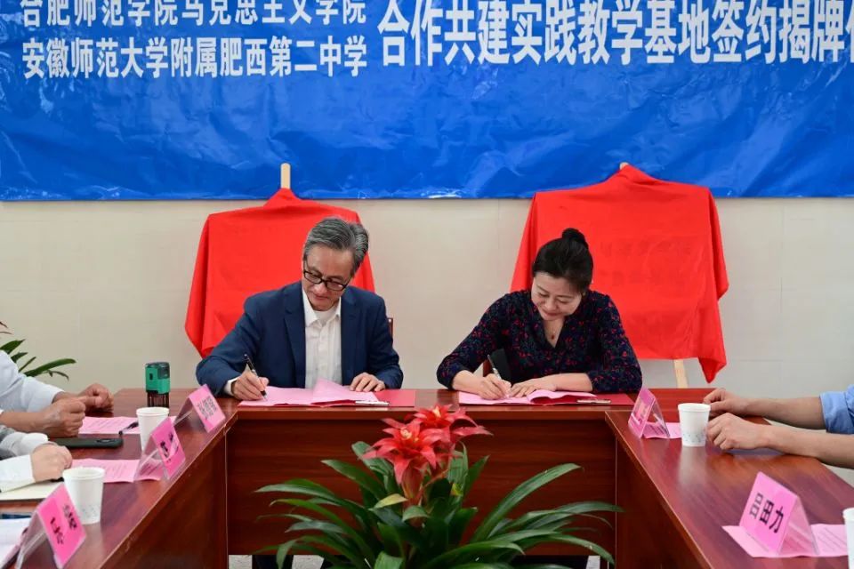 最后,beat365官方网站党总支书记吕田力、安徽师范大学附属肥西第二中学校长乐培,代表共建双方现场签约。在热烈的掌声中,陶有浩、姚中华,吕田力、徐昌云分别为“实践教学基地”和“大学生就业基地“揭牌,与会全体人员一同见证,合影留念。