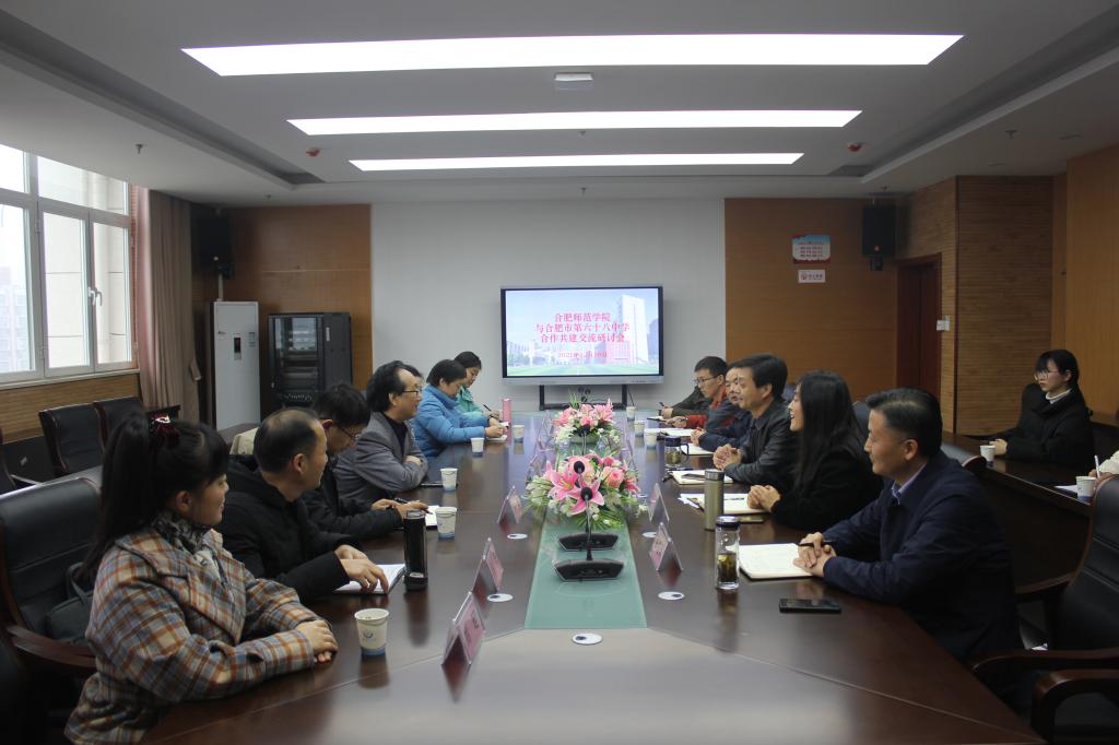 本网讯12月16日下午,我院领导赴合肥市第六十八中学看望挂职教师和实习生,学院党总支书记吕田力、实践教学部主任魏兵副教授、研究生教学部副主任和校外实习指导老师陈露一行走进我院挂职教师傅文茹办公室,亲切地与傅老师和实习生们召开座谈会,让傅老师和五位实习生(2019级思想政治教育班陈玉钊、方媛、李悦、周治影和周欣雨)感觉温暖满满。