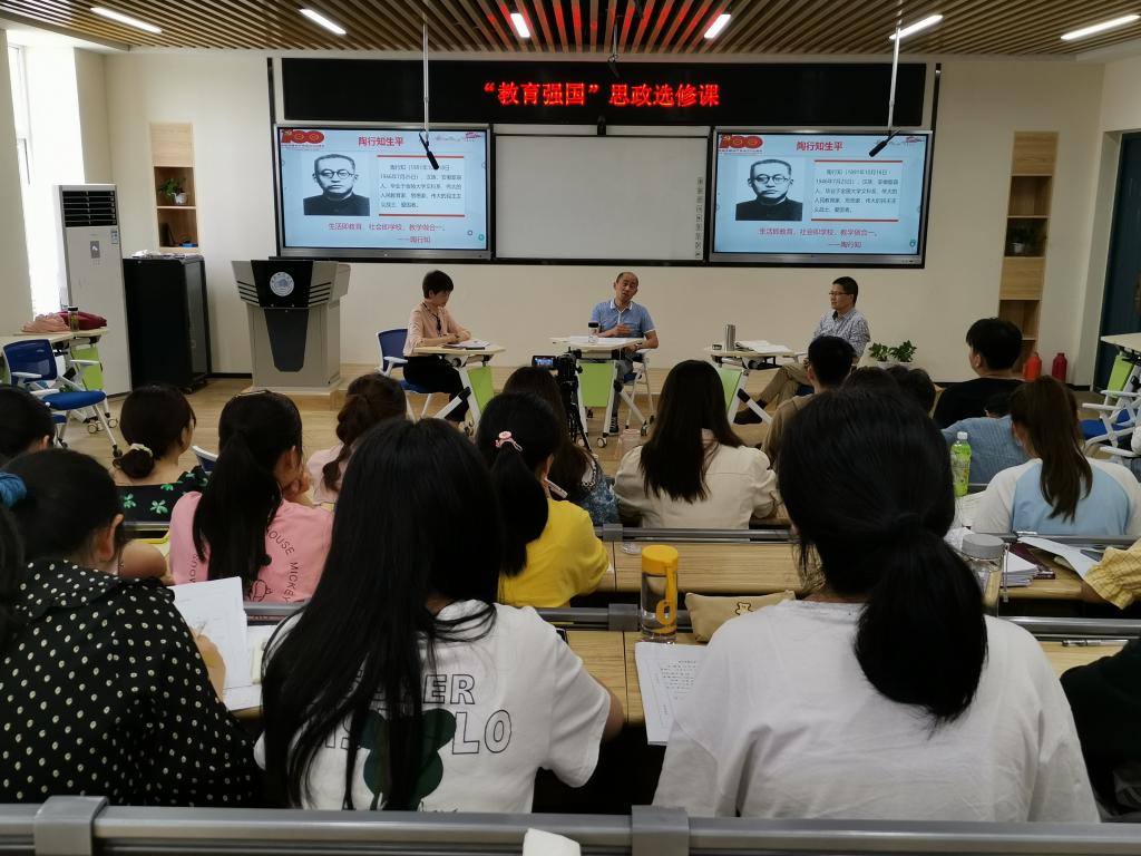 讲座过程中,两位嘉宾老师围绕“理想”、“本领”、“担当”三个关键词对陶行知的教育精神做了重点解读,指出青少年时代的陶行知就树立了“我是一个中国人,要为中国做出一些贡献来”的理想。从美国哥伦比亚大学毕业回国后,陶行知怀着“要使全中国人都受到教育”的宏愿,开始了他的“教育报国”之路的艰辛探索。无论是南京晓庄实验乡村师范学校的创立、山海工学团的创建、中国教育学会的发起成立,还是重庆育才学校的创办,都体现着陶行知先生对国家,对人民的担当精神,这也是陶行知教育精神的核心。