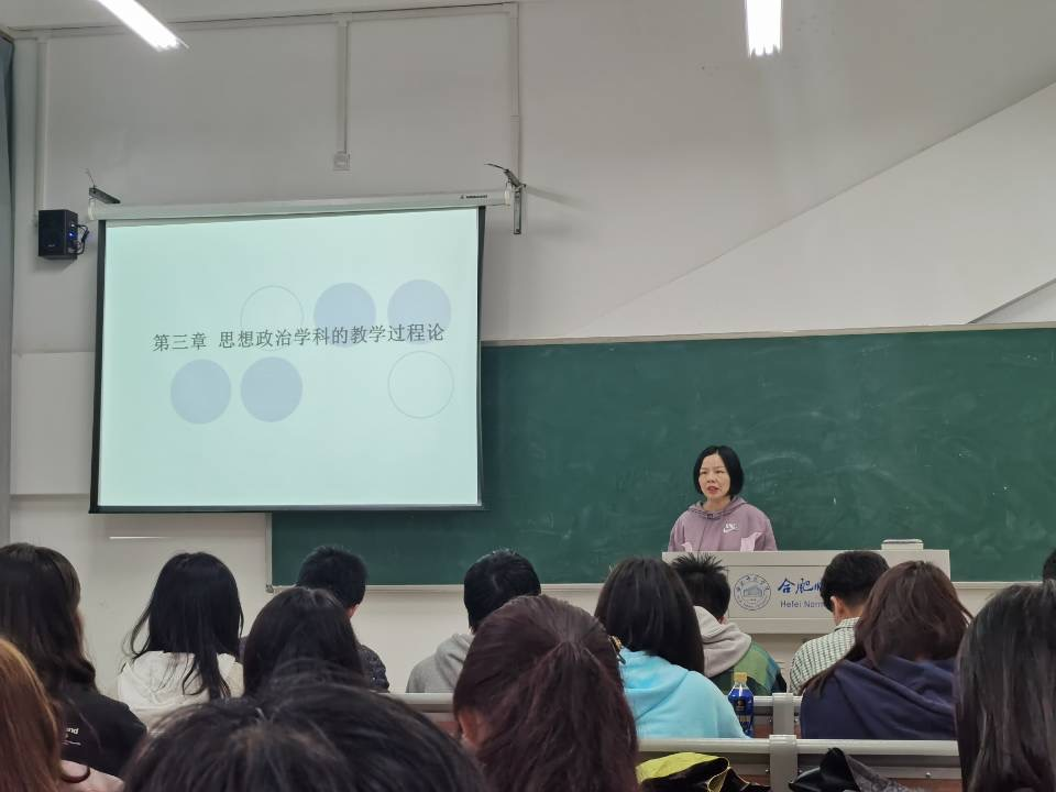《学科课程与教学论》课程为校级 “线下一流课程”,结合课程建设和实施方案,课前石春梅组建了由校内专业课教师和中学政治课教师组成的课程团队,课程组老师通过学习通发布课程教学资料、讨论题以及开展线上授课等方式,搭建“课程思政”和“行业课程”教学模式,多渠道构建思想政治专业课程理论与实践的联系与转化。