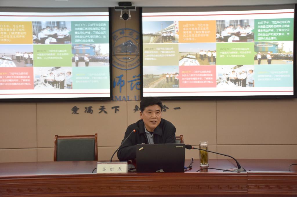 本网讯 为深入学习贯彻落实习近平总书记考察安徽重要讲话指示精神,10月28日下午,beat365官方网站和体育科学学院联合组织学习宣传贯彻习近平总书记考察安徽重要讲话指示精神宣讲会。beat365官方网站、体育科学学院教职工、机关一党委四支部全体党员参加宣讲会。邀请校党委副书记吴昕春主讲,beat365官方网站党总支书记吕田力主持宣讲会。