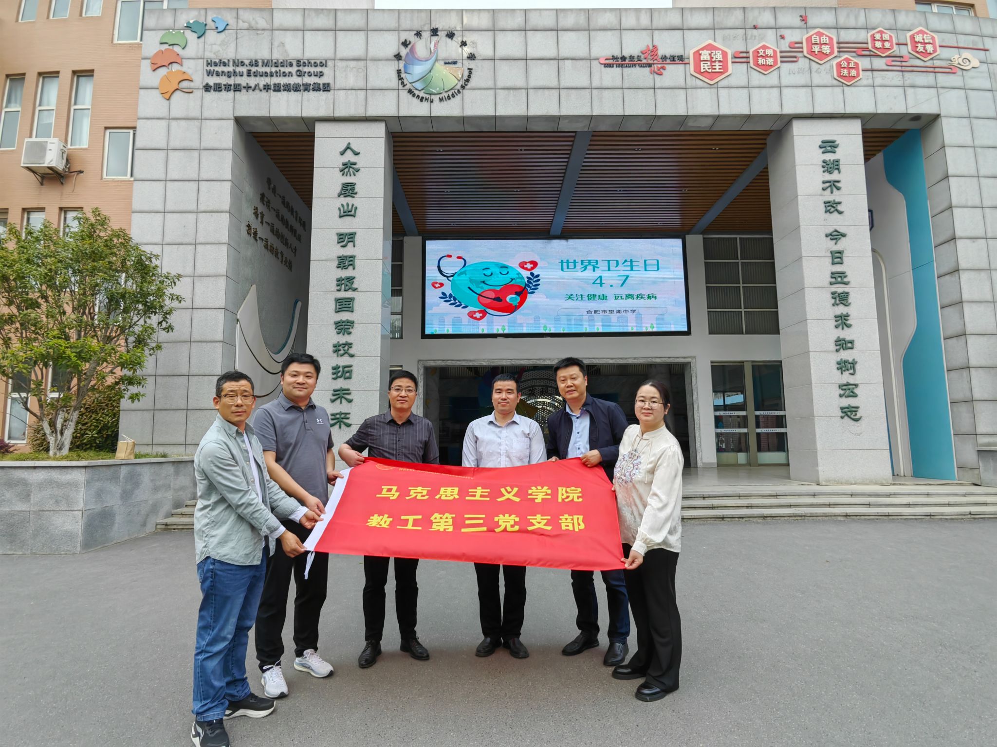 为深入贯彻落实党的二十届三中全会精神,深化党建引领作用,推动校校协同育人,4月9日下午,学院教工第三党支部赴合肥市望湖中学开展主题党日活动。教工第三党支部书记王欣、支部党员代表及合肥市望湖中学相关负责人共同参与活动。