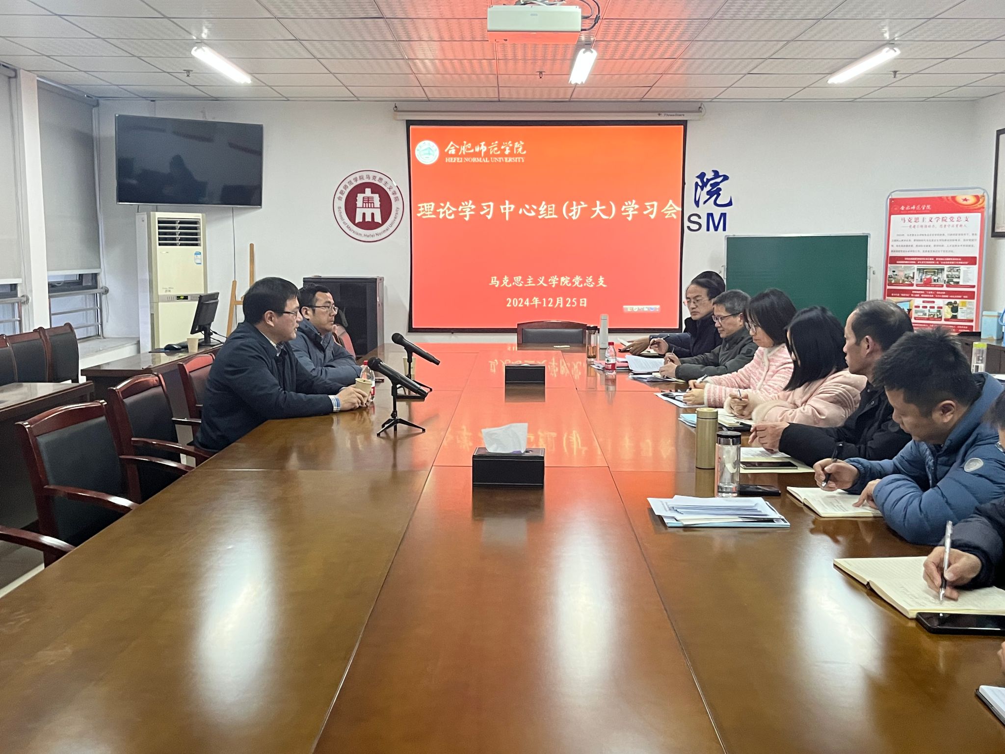 会上,与会人员共同学习习近平对新时代马克思主义理论研究和建设工程作出的重要指示精神、习近平在二十届中共中央政治局第十八次集体学习上的重要讲话精神、习近平在庆祝澳门回归祖国25周年大会暨澳门特别行政区第六届政府就职典礼上的重要讲话精神以及习近平在中央经济工作会议上的重要讲话精神。与会人员结合本次理论学习内容和工作实际,从学院建设、学科建设、教研室建设、思政课改革创新等方面进行了交流研讨。