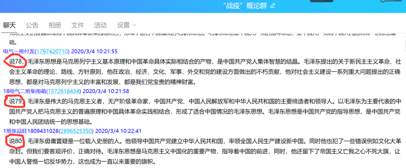 图3:学生在QQ群的讨论接龙
