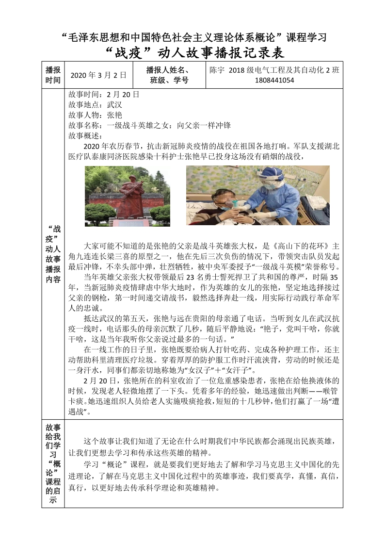 图1:学生“战疫”动人故事播报记录表
