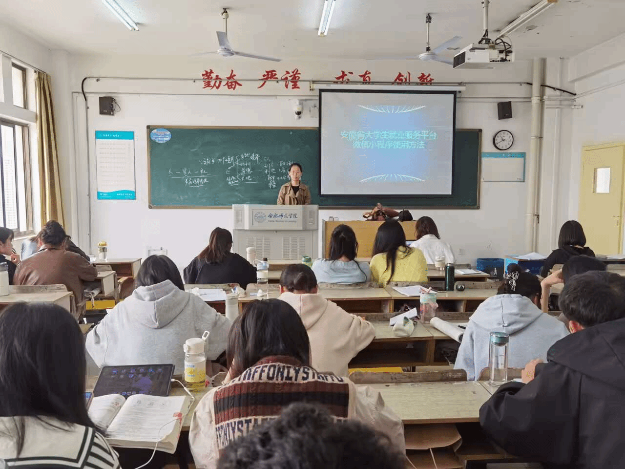 会上,王萌结合学校和学院关于就业工作的会议精神和内容,引导毕业生树立正确的就业观念,积极主动就业,拓宽就业渠道,争取先就业再择业;针对考研学生,应理性选择报考学校,调整心态,做好充分准备。她仔细讲解了2023届毕业生微信小程序的使用方法和平台功能,组织学生开展注册、生源信息和简历维护等工作,为毕业生提供快捷、方便的就业服务,不断提升毕业生就业工作信息化水平。