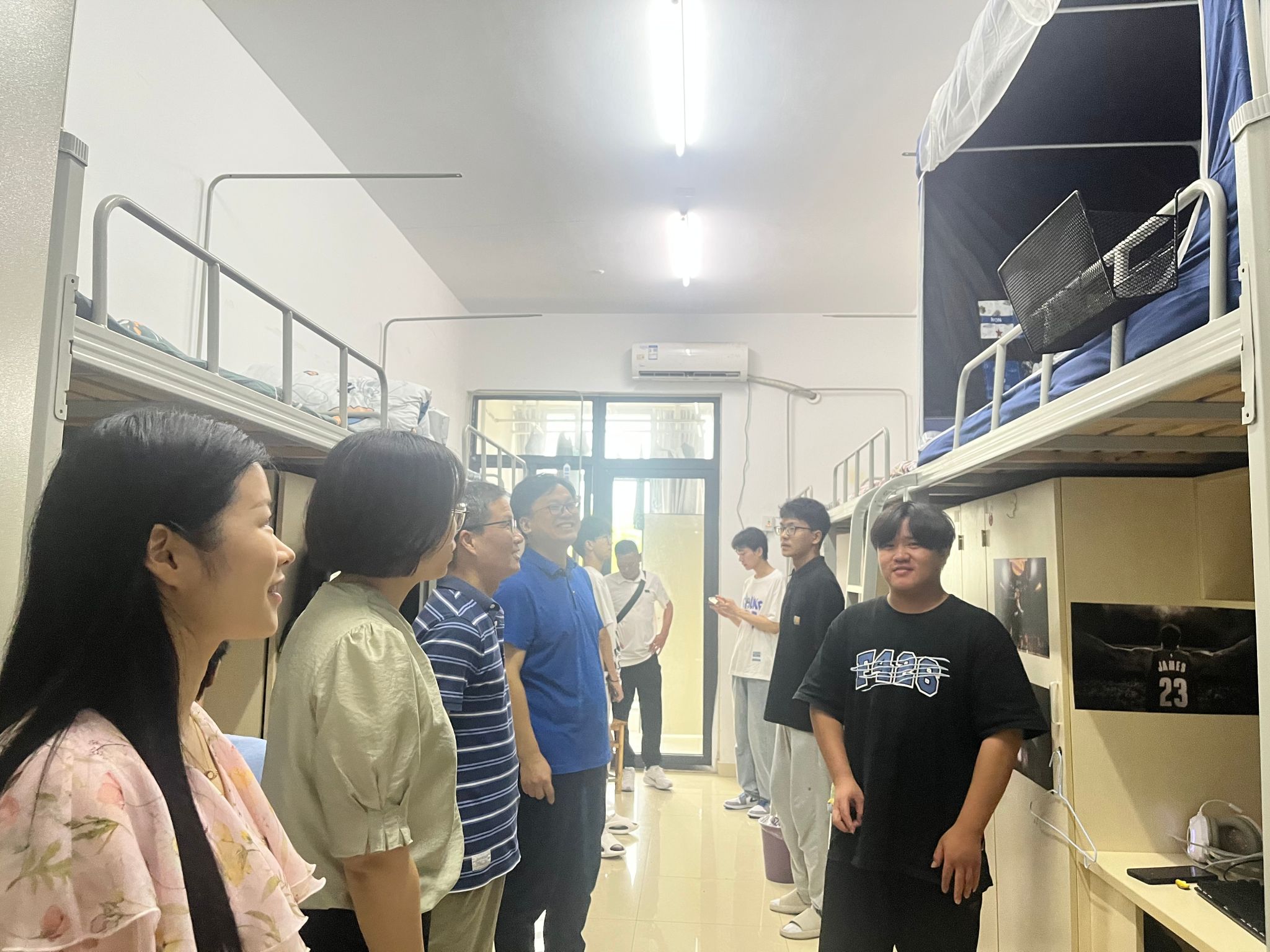 9月10日下午,beat365官方网站党总支书记刘艳、院长何光辉、政法系主任周继祥、辅导员王萌前往宿舍看望新生,对新生表示深切的慰问和关心,对他们加入beat365官方网站大家庭表示热烈欢迎。每走访一个宿舍,院领导都会亲切地询问同学们来自哪里、兴趣爱好等,并仔细查看宿舍设施是否齐全。同时希望同学们能够和睦相处,营造和谐室友情;认真学习,争创学霸宿舍。