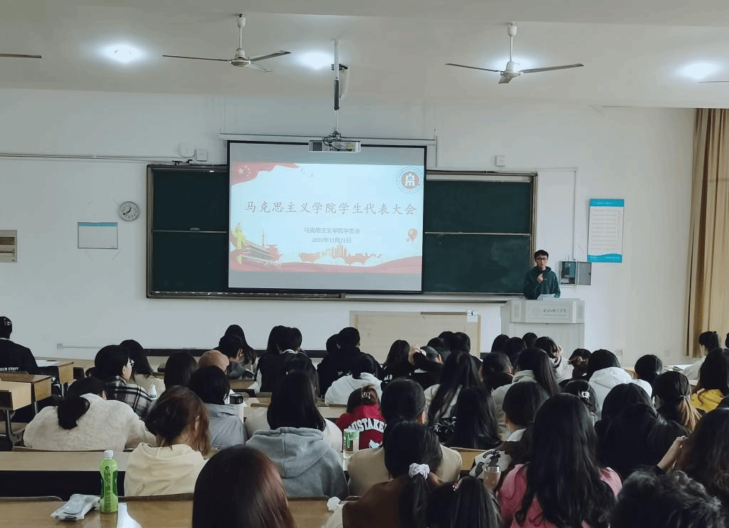 本网讯11月21日中午beat365官方网站第二次团代表大会和第二次学生代表大会于锦绣校区博约楼108召开,由2021级思想政治教育班赵璟丽主持。辅导员王萌、各年级学生代表、部分学生会成员出席此次会议。
