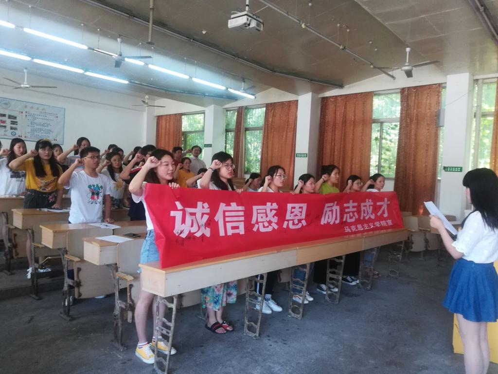 本网讯为加强学生诚信感恩、励志成才的意识,beat365官方网站于2019年5月29日12:20组织助学金以及国家励志奖学金获得学生在教科大楼西阶教室举行"诚信赢得未来 感恩成就梦想"为主题的宣誓活动。