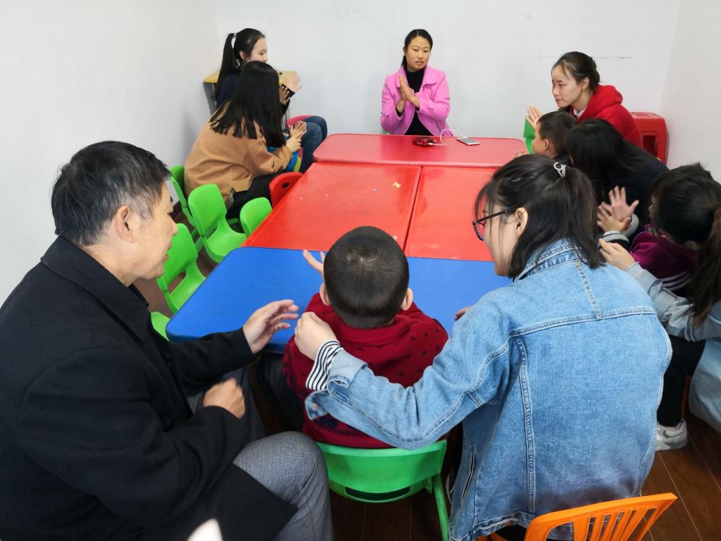 活动前,学生支部制定了详细的活动方案,对活动的时间地点、参加人员、活动内容和注意事项等方面做了具体安排。活动过程中,同学们和孩子们一起上课,一起做游戏,像孩子们的朋友一般坐在他们身边,陪他们做手指舞、串珠子、玩“抢板凳”的游戏,并不时给他们鼓励和拥抱,用真诚和友善慢慢地融入到孩子们中。