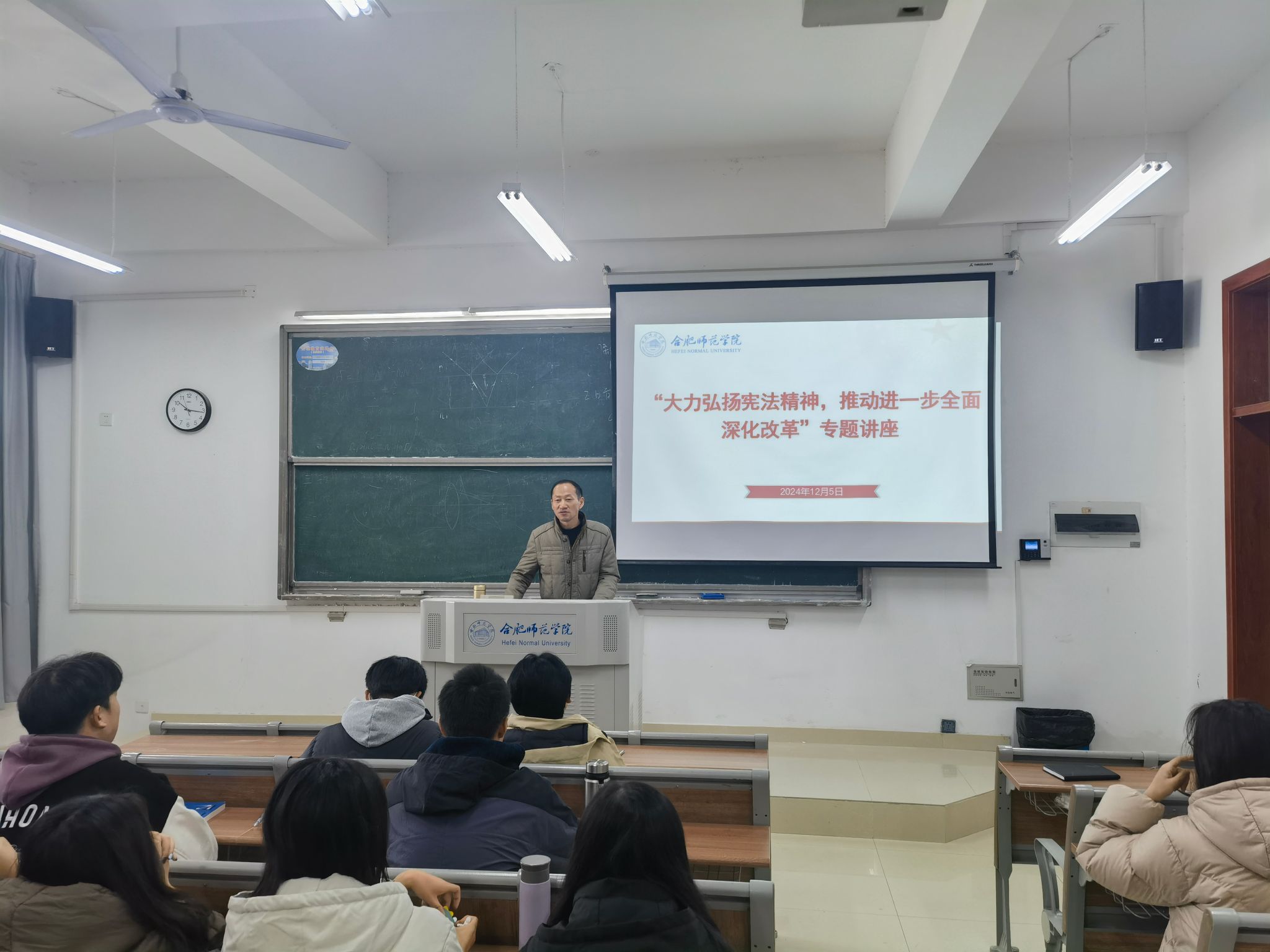 12月5日,邀请学院法学概论课教师魏兵副教授作“大力弘扬宪法精神,推动进一步全面深化改革”专题讲座,魏老师从什么是宪法、宪法的意义和地位、新中国宪法的发展历程和现行宪法的主要内容等四个方面进行阐述,此次专题讲座进一步加深了同学们对宪法的认知与理解,引领青年学子深刻领悟宪法的核心要义,切实感悟宪法的重要价值,激励他们争做时代新青年。