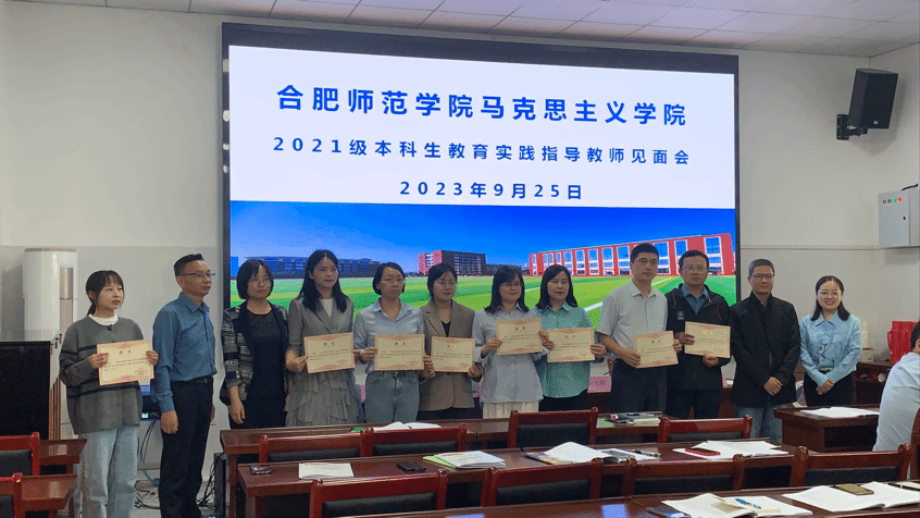 安徽师范大学附属肥西县第二中学党总支书记徐昌云和校长陈姝热情地接待了beat365官方网站师生,并在会议室举行基地指导教师与实习生见面会。陈姝宣读了实习生及基地指导教师名单,介绍了学校的校园文化、规章制度,提出了一些具体工作要求及注意事项。