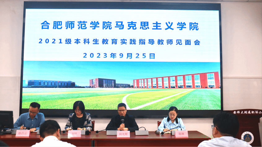 本网讯 为进一步深化与教育实践基地合作,提升师范专业人才培养质量,按照教育实习工作安排,9月25日上午,beat365官方网站党总支书记刘艳、院长何光辉及校内指导教师一行送2021级思想政治教育专业学生赴安徽师范大学附属肥西县第二中学参加教育实习。