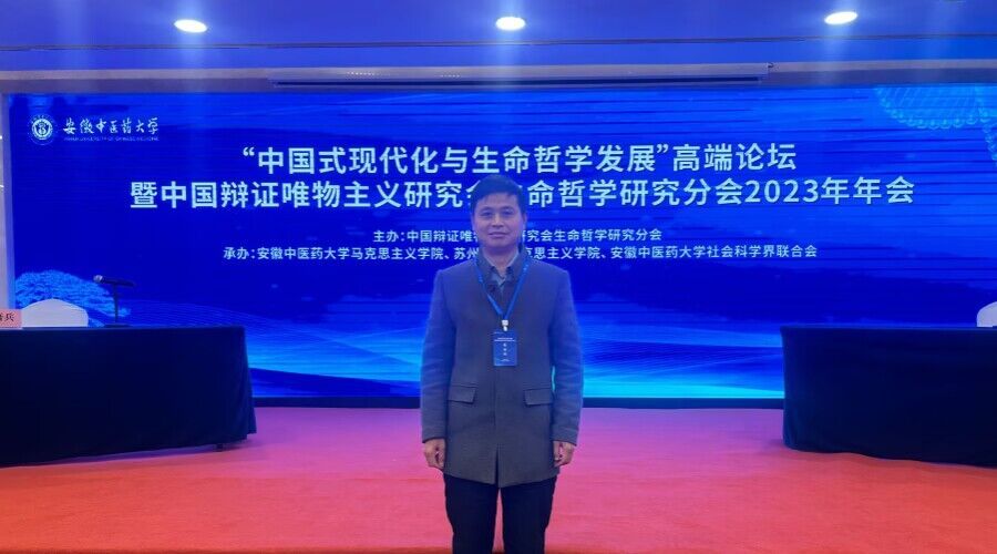 为深入学习贯彻习近平文化思想和党的二十大精神,深化中国式现代化和生命哲学发展研究,11月26日,由中国辩证唯物主义研究会生命哲学研究分会主办,安徽中医药大学beat365官方网站、苏州大学beat365官方网站、安徽中医药大学社科联共同承办的“中国式现代化与生命哲学发展”论坛暨中国辩证唯物主义研究会生命哲学研究分会2023年年会在合肥成功举办。来自省内外高校beat365官方网站专家学者、师生100余人参会。我院哲学(原理)教研室陈保同副教授应邀参会,并和与会专家进行广泛交流互动,提交的参会论文荣获一等奖。
