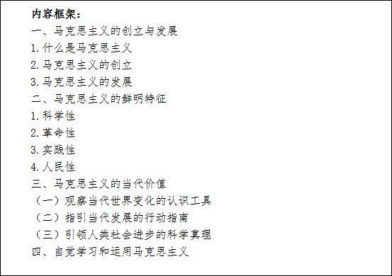 课程教学要在固定时间完成,要对教材内容进行提炼与区分,基础内容应该重点讲解,提高内容与拓展内容可根据学生情况,有选择性讲解;在讲解马克思主义基本方法、立场、观点时要讲清、讲透、讲精,力争让学生入脑、入心、践行,取得实效。