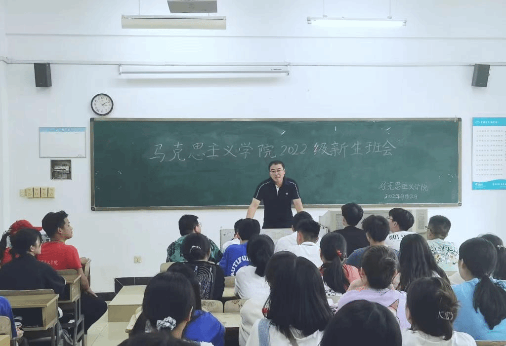 会上,束道峰向2022级新生表示热烈的欢迎,希望新生尽快融入beat365官方网站大家庭。介绍了思想政治教育专业前景和专业培养目标,激励新生树立远大理想,强调大学期间一定要做到自律,提高思想境界。