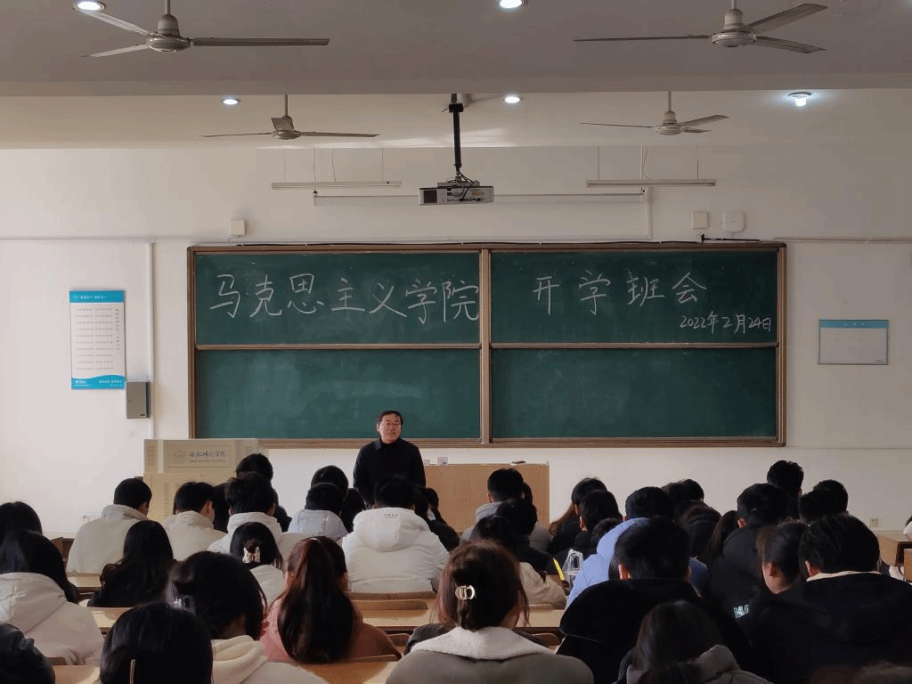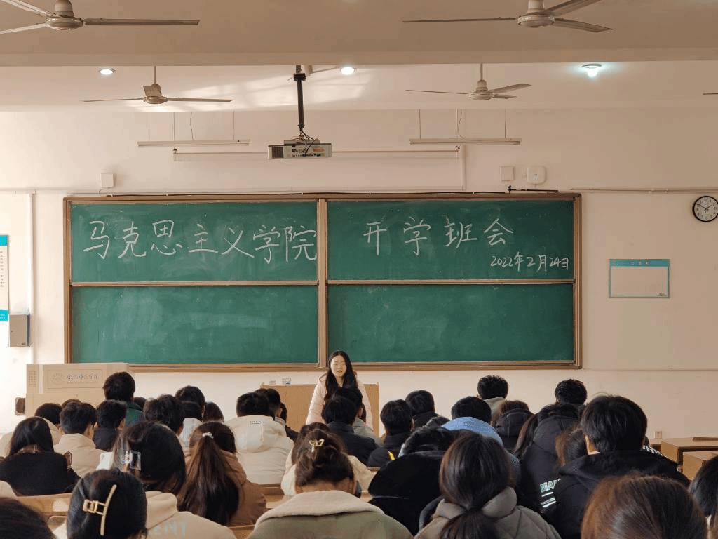 本网讯为做好学院新学期学生工作,beat365官方网站于2月24日在博约楼201召开2022年新学期主题班会。会议由辅导员王萌主持,组织员束道峰和全院学生参会。