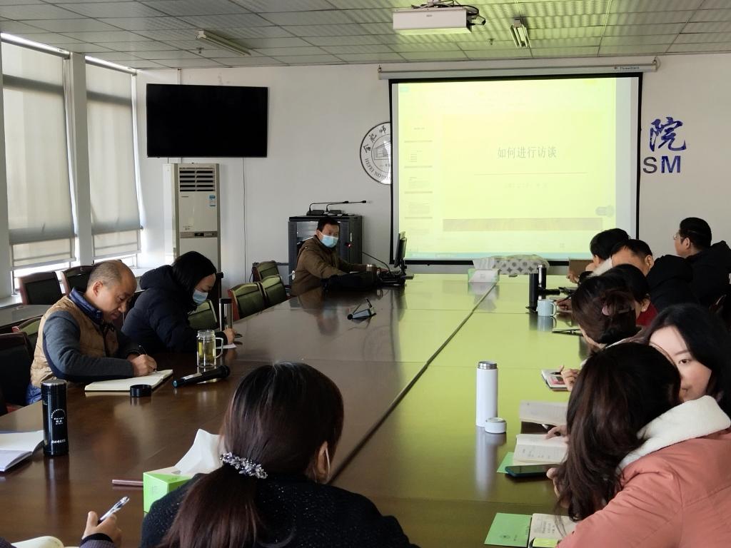 徐俊教授首先以访谈的概念为切入点,介绍了访谈与实地研究的关系、访谈与问卷调查的区别;随后重点介绍了访谈的操作技巧,详尽阐释了无结构访谈的技术要点、访谈控制的方法以及访谈等定性资料的整理与分析;最后,徐俊教授与我院教师进行了深入交流并分享了访谈方面的相关资料。