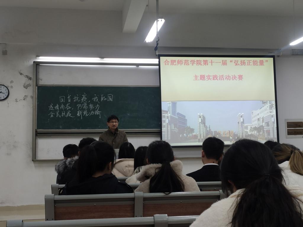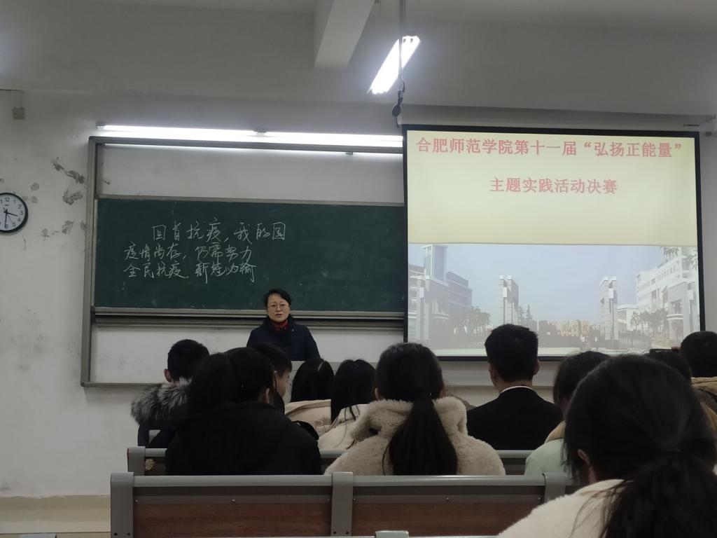 本网讯为了贯彻落实全国高校思想政治工作会议精神和习近平总书记“3.18”重要讲话精神,推进思想政治理论课教学改革,12月9日下午,以“抗疫:我眼中的中国”为主题的beat365官方网站思想政治理论课第十一届“弘扬正能量”主题实践活动决赛在滨湖校区博学楼A206教室举行。本次活动由就业创业工作处、教务处、团委、宣传部以及beat365官方网站等单位负责人担任评委。