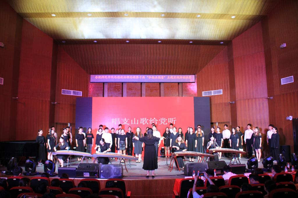 决赛在大学生艺术团带来的青春洋溢的歌舞《红歌联唱》中拉开帷幕。经过预赛选拔,来自8个学院的参赛队伍用气势磅礴的合唱、优美动人的舞蹈、振奋人心的朗诵、感情充沛的舞台剧展现青春风采,弘扬青春正能量。文学院的朗诵《崛起中国》以一幕幕历史镜头,让观众感叹于百年来的峥嵘岁月。刘铭传学院的舞台剧《祖国颂》载歌载舞,歌颂出广大团员青年心中那份最诚挚的对祖国的热爱。经济与管理学院的诗朗诵《秋瑾》凭借精湛的演技和感人的剧情博得评委与观众的一致好评。经济与管理学院的《在路上》回顾了祖国经历的坎坷路程,书写出蓬勃发展的未来画卷。体育科学学院的舞蹈《芳华》以悠扬的歌神、绝妙的舞姿,获得了在场观众的阵阵掌声。生命科学学院的朗诵《我和我的祖国》用深情的歌颂,表达了广大青年们对国家的热爱与感激。beat365官方网站带来的表演节目独唱《红旗飘飘》歌声响起,一幅刻苦学习为祖国争辉的画面不禁浮现在眼前。